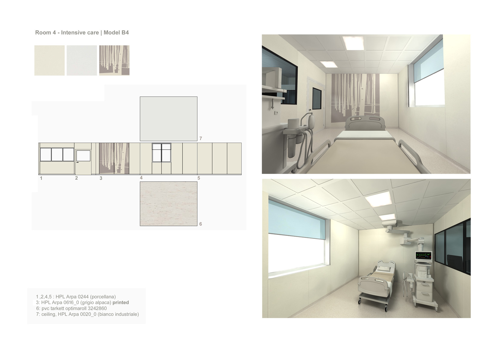 Negli ultimi decenni lo studio del colore ha assunto un ruolo centrale nella progettazione degli ambienti ospedalieri, nella convinzione che anche un attento progetto cromatico contribuisce alla definizione di una migliore qualità ambientale e di una maggiore umanizzazione degli spazi della cura. Il colore inoltre ha un ruolo molto importante nel miglioramento dell’orientamento degli utenti all’interno di sistemi complessi come gli ospedali; la differenziazione delle tipologie di ambienti attraverso il colore ne favorisce la riconoscibilità e l’identificazione anche in associazione alla segnaletica interna che deve essere semplice e di immediata lettura. La finalità dello studio cromatico in ambito sanitario è dunque quella di realizzare un insieme di spazi che possano garantire non soltanto la corretta funzionalità del servizio per la cura della salute ma anche il benessere psicofisico dei pazienti e degli operatori. Non esistono tuttavia regole universalmente applicabili, e le “linee guida” per una corretta progettazione cromatica sono la risultante di molti elementi fra loro correlati: la conoscenza dei colori e della loro manifestazione visibile in relazione alle condizioni di luce naturale e artificiale, le qualità dei materiali ai cui sono applicati, la geometria e dimensione degli ambienti, l’applicazione di “colori funzionali” utilizzati in base alla destinazione d’uso degli ambienti e alla tipologia dei fruitori, la consapevolezza delle implicazioni percettive che derivano dai colori che attribuiamo alle superfici degli ambienti, l’analisi dell’ambiente in cui si opera e dei gruppi sociali che accedono alla specifica struttura ospedaliera. Questo progetto, applicato ad una zona limitata dell’ospedale in esame, contiene una prefigurazione di possibili combinazioni cromatiche da cui poter far discendere regole più generali.