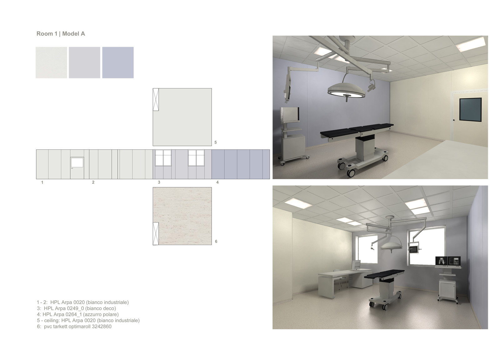 Lo studio è stato chiamato a sviluppare il progetto di partizioni verticali e orizzontali di sei ambienti tipo per un ospedale a Minsk, in Bielorussia. Il committente è un’azienda che progetta, costruisce e installa pareti modulari e arredi per ambienti sterili e a contaminazione controllata.