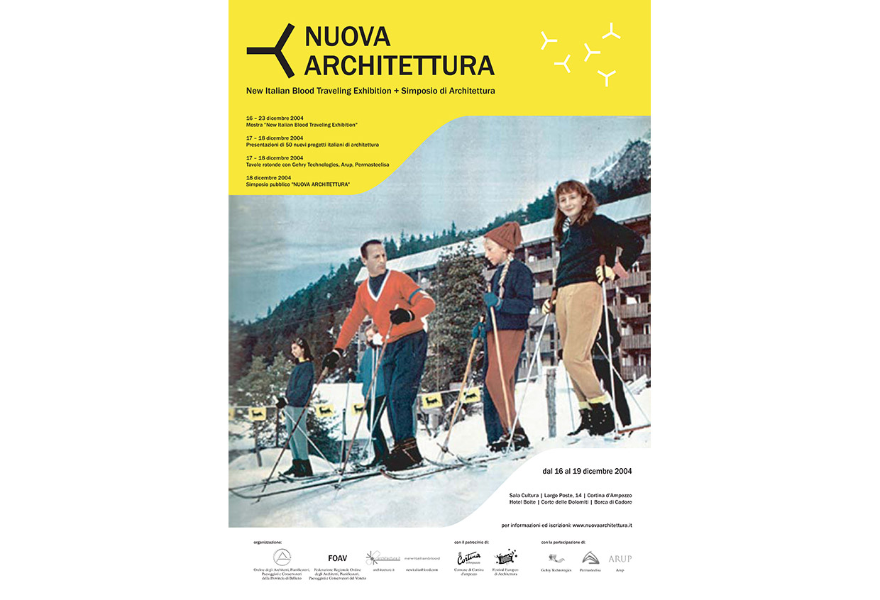- Nuova Architettura – Convegno organizzato da Furio Barzon (Collaboratorio) con Federazione Ordine Architetti PPC Veneto, Ordine degli Architetti PPC della Provincia di Belluno, architecture.it, newitalianblood.com, 2A+P, Comune di Cortina d’Ampezzo, con la partecipazione di Gehry Technologies, Arup, Permasteelisa. Nuova Architettura si è svolto dal 16 al 19 dicembre 2004 sulle Dolomiti bellunesi. Il convegno ha coinvolto oltre cento studi di architettura italiani under 40 selezionati in base ai successi ottenuti in concorsi di progettazione nazionali ed internazionali.