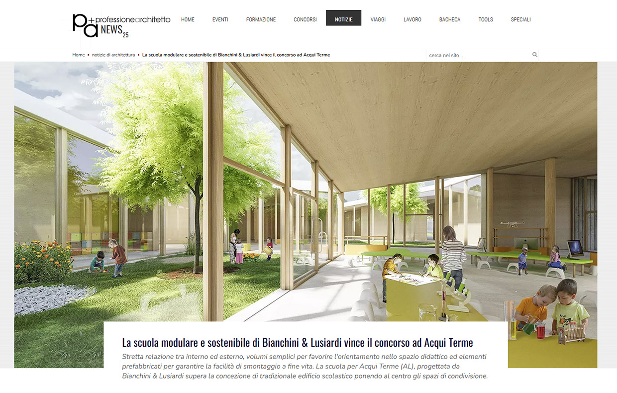 - ‘La scuola modulare e sostenibile di Bianchini & Lusiardi vince il concorso di Acqui Terme’, Professione Architetto, 7/03/2024